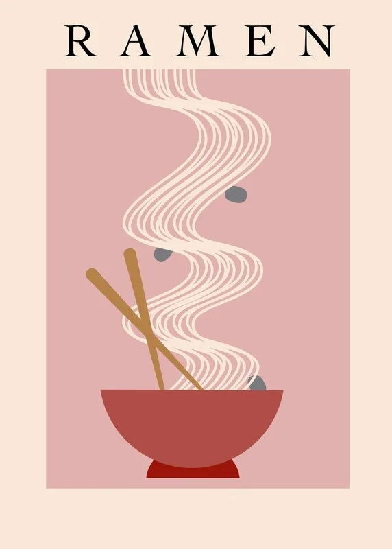 Obraz na plátně Ramen Nudles Wall Art Minimalistic Pink Design