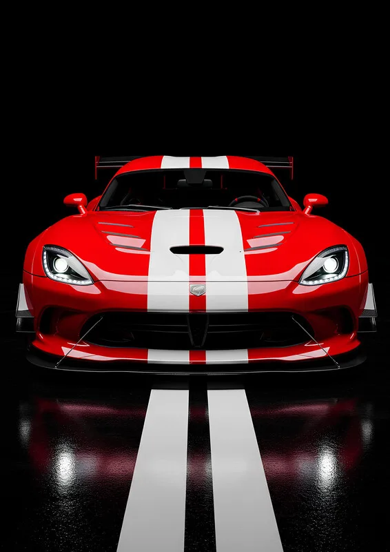 Plakát Red Dodge Track Beast with Bold White Racing Stripes