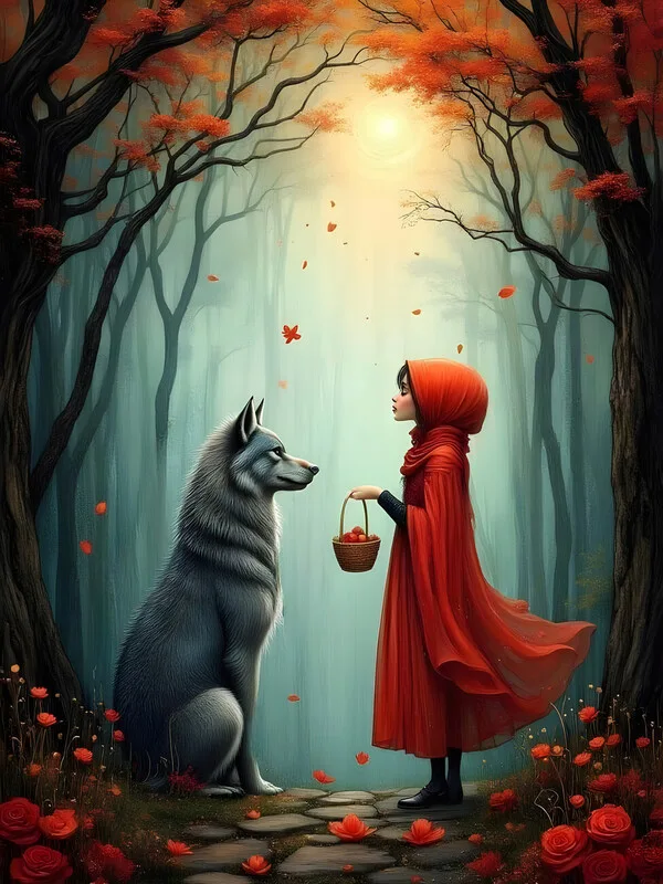 Plakát Red Riding Hood And Wolf in a magic Forest