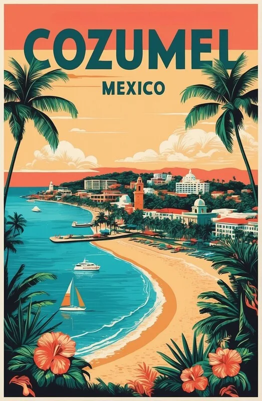 Obraz na plátně Retro Cozumel Illustration of Island Beauty