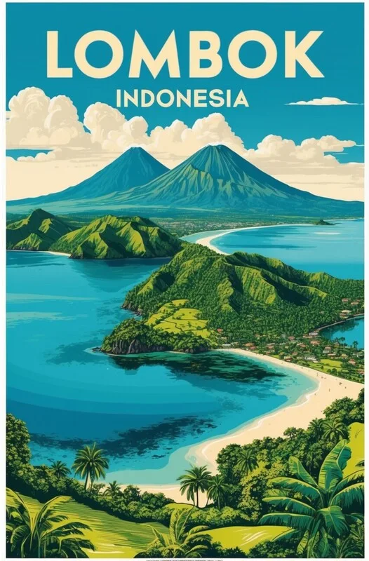 Samolepka Retro Lombok Island Art Print with Exotic Charm