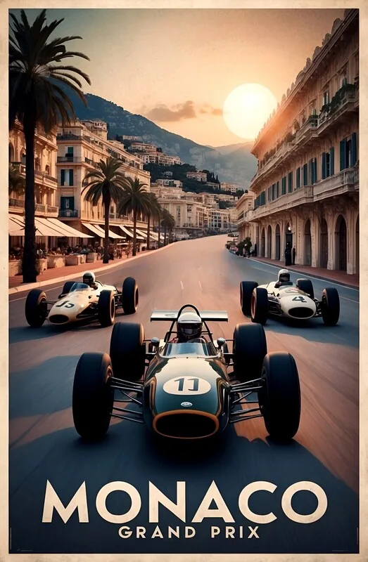 Obraz na plátně Retro Monaco Grand Prix Art: Classic Motorsports Scenes