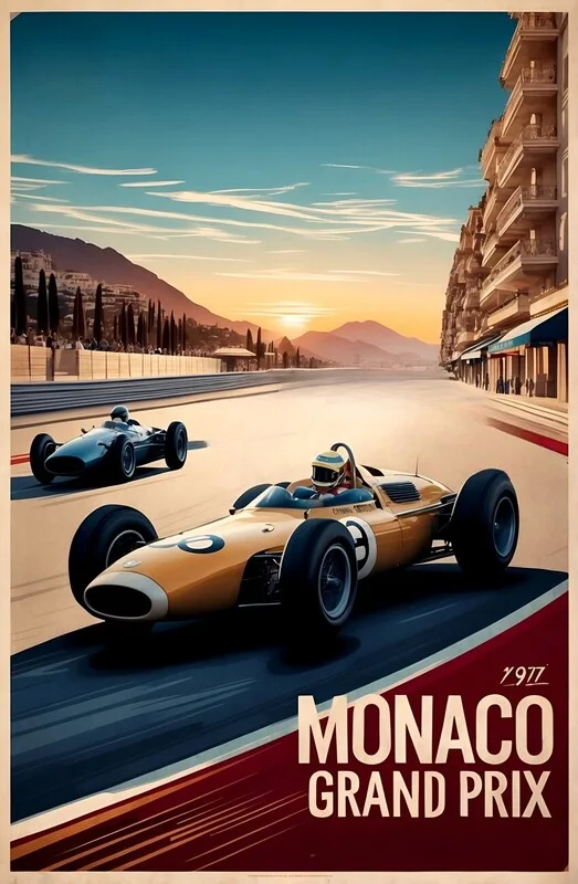 Obraz na plátně Retro Monaco Grand Prix Print: Historic Motorsports Moments
