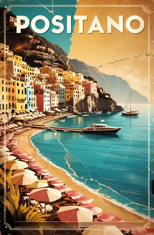 Samolepka Retro Positano Art – Classic Illustrations of the Amalfi Coa
