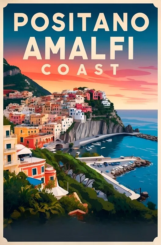 Obraz na plátně Retro Positano Art: Classic Italian Riviera Scenes