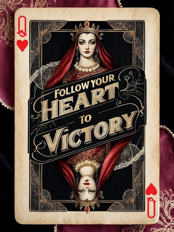 Plakát Retro Queen of Hearts Illustration Vintage Card Game Decor