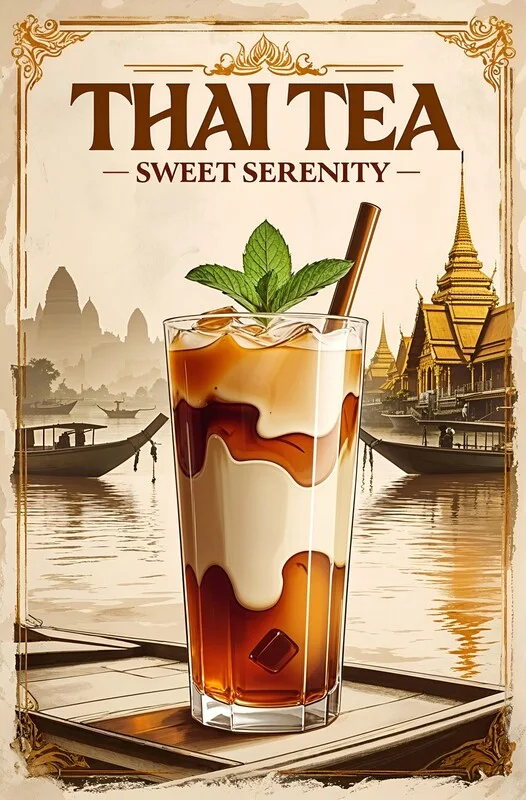 Obraz na plátně Retro Thai Iced Tea Art: Timeless Beverage Bliss