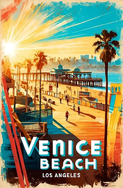 Samolepka Retro Venice Beach Illustration – Timeless California Coasta