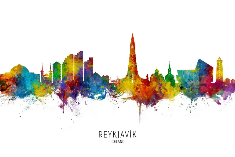 Samolepka Reykjavik Iceland Skyline Cityscape Painting Watercolor
