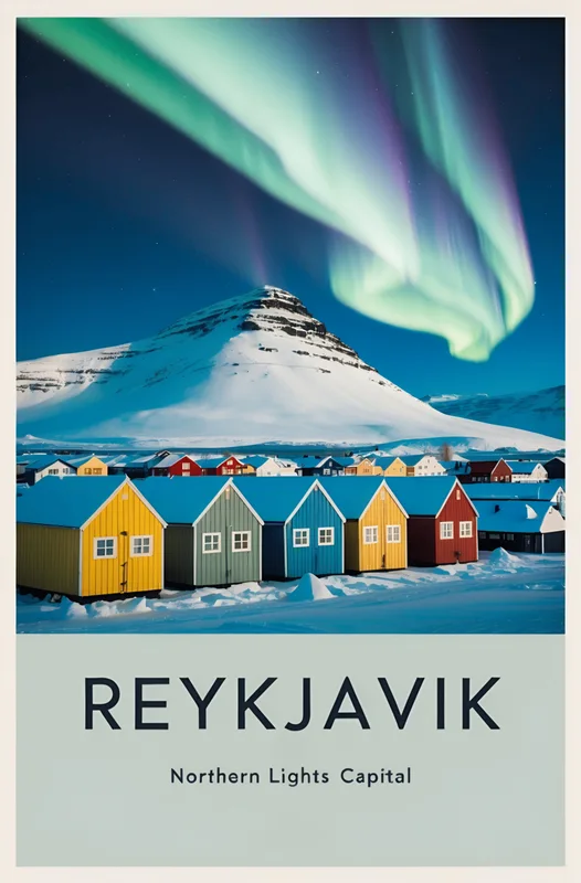 Samolepka Reykjavik Vintage Travel Poster – Northern Lights Capital