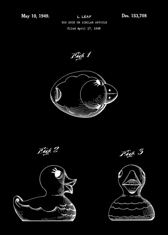 Samolepka Rubber Duck Patent Print Art 1949