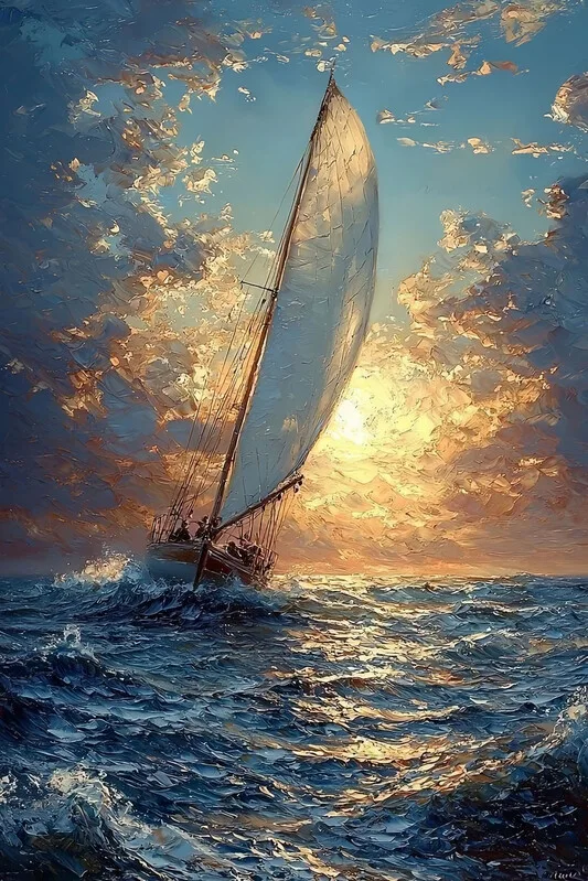 Samolepka Sailing into Sunset Textured Ocean & Golden Skies, wall deco