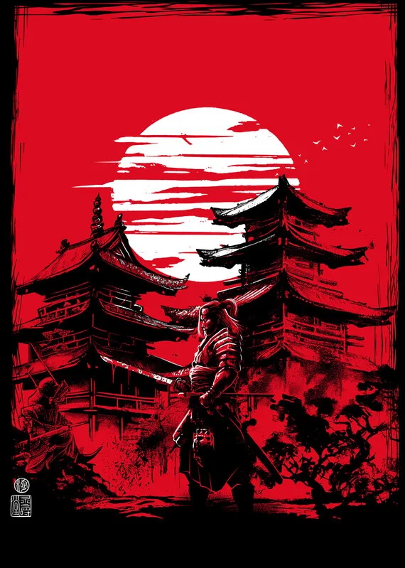 Obraz na plátně Samurai among the temples