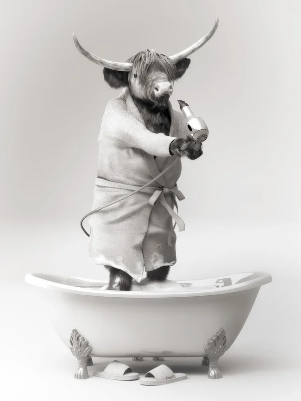 Plakát Scottish highland cattle in a bathtub,funny bathroom