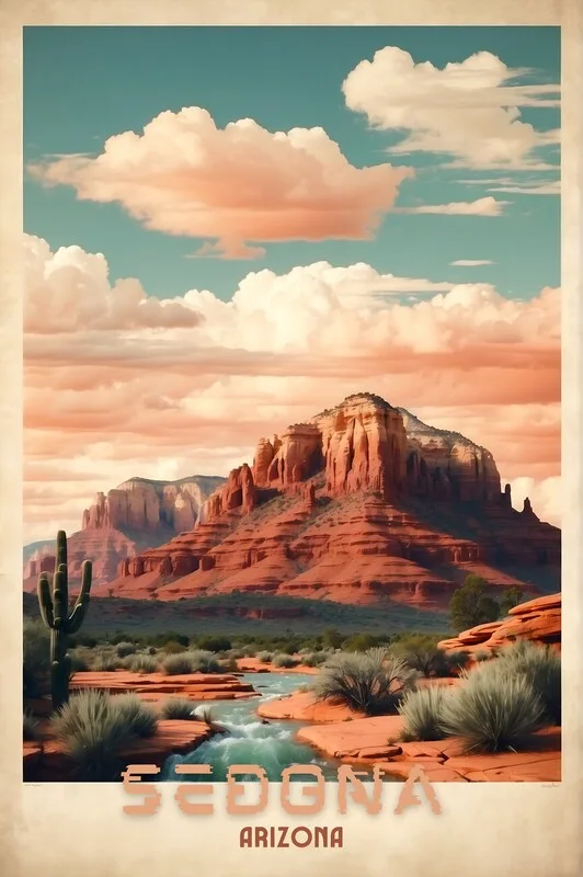 Samolepka Sedona Vintage Travel Poster - Southwest Serenity Unveiled