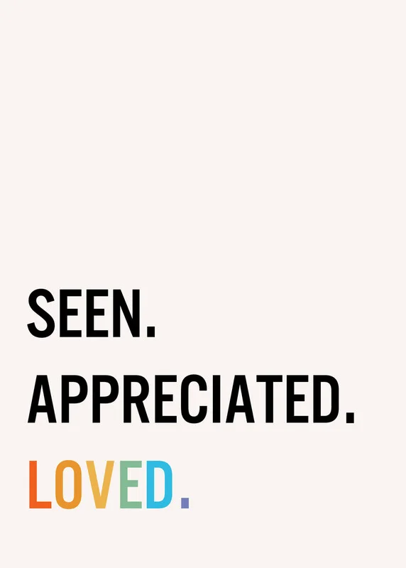 Seen Appreciated Love poster in beige background. Colorful poster