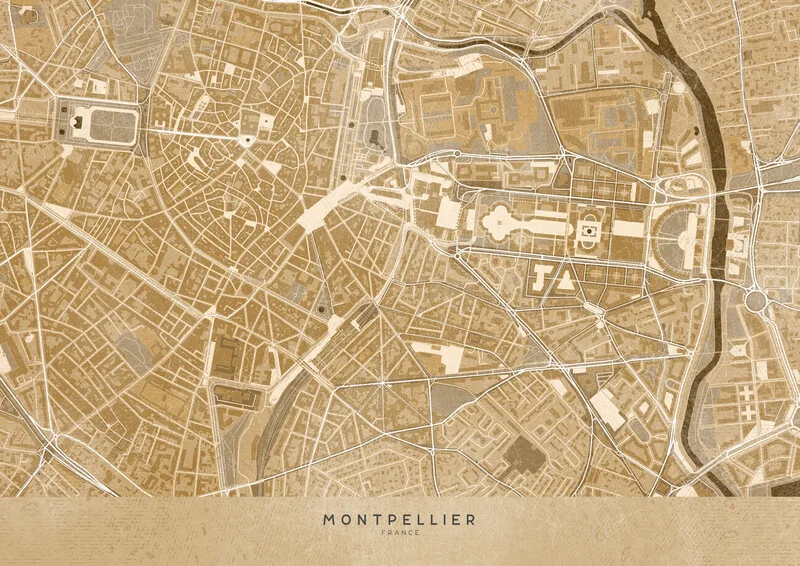 Samolepka Sepia vintage map of Montpellier downtown (France)