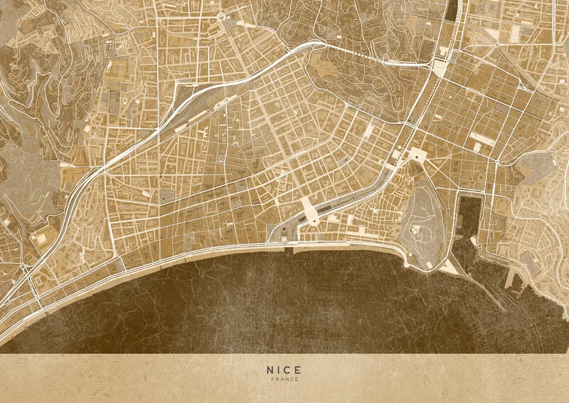 Obraz na plátně Sepia vintage map of Nice downtown (France)
