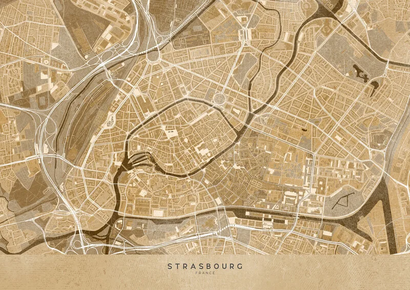 Samolepka Sepia vintage map of Strasbourg downtown (France)