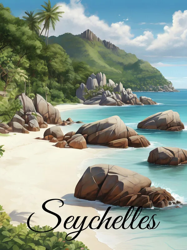 Plakát Seychelles Rocky Beach