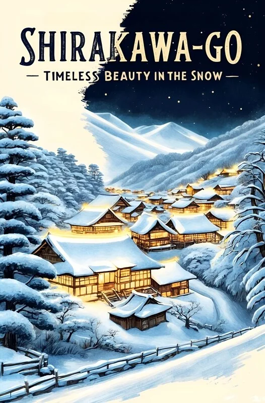 Samolepka Shirakawa-go Winter Poster: Timeless Beauty in Snow