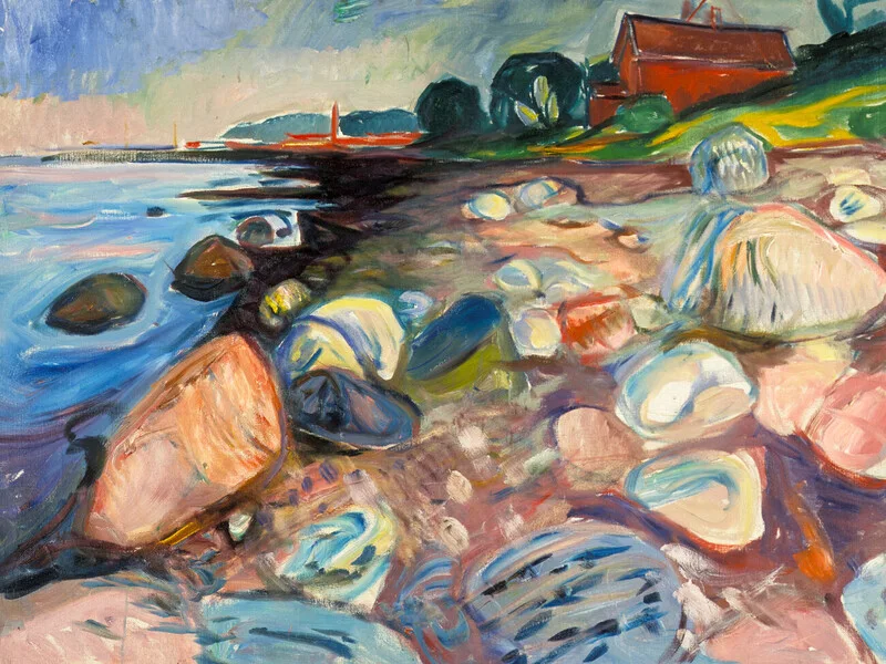 Plakát Shore with Red House (Vivid Landscape) - Edvard Munch
