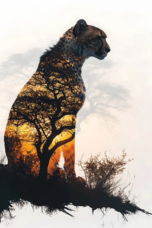 Samolepka Silhouette of cheetah with double exposure