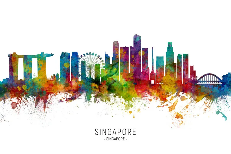 Plakát Singapore Singapore Skyline Cityscape Painting Watercolor