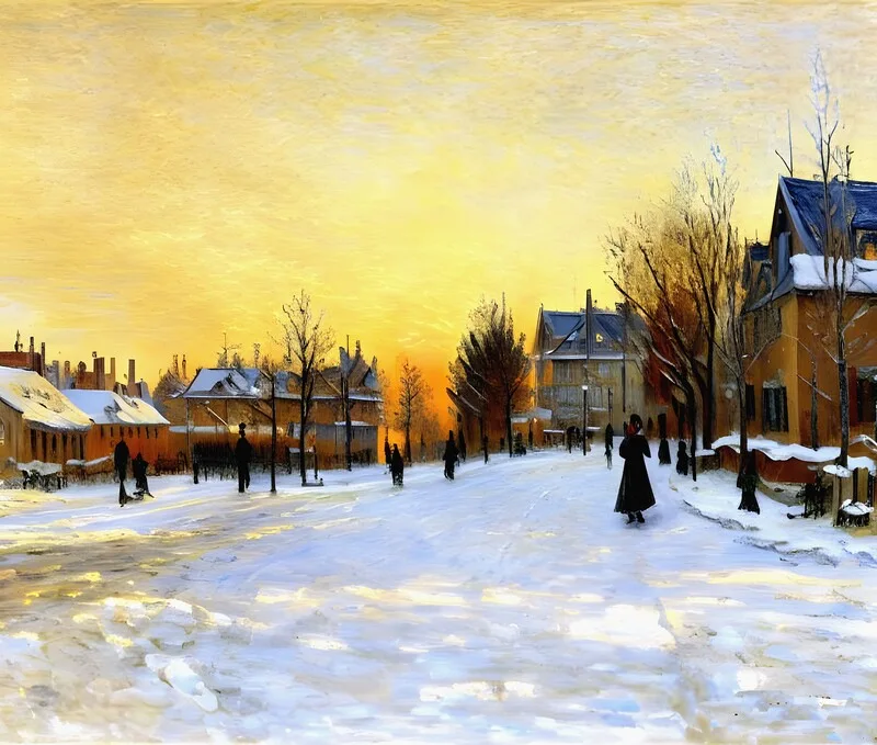 Obraz na plátně Snow Effect - The Street in Argenteuil on a Winter’s Day