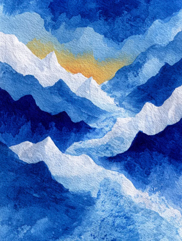 Samolepka Snowy Mountains Watercolour Blue and Yellow