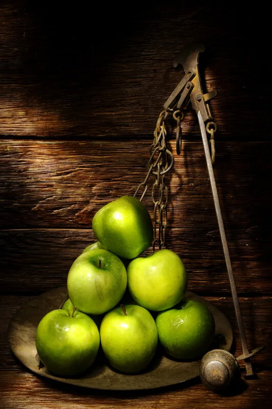Samolepka Some apples on a vintage scales