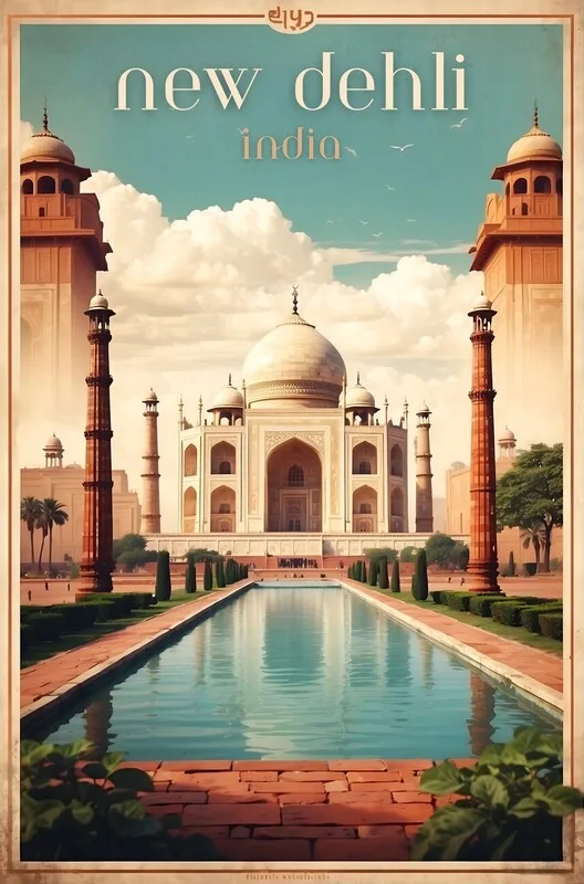 Obraz na plátně Spirit of Delhi: Vintage New Delhi Travel Poster