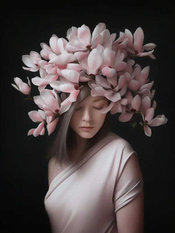 Samolepka Spring Girl with pink flowers 2