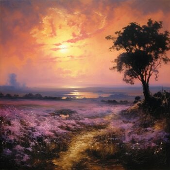Sunset Path Through Flower Fields
