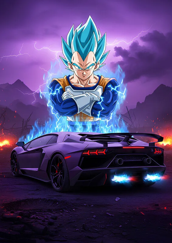 Obraz na plátně Super Saiyan Blue Vegeta with Purple Lamborghini Poster