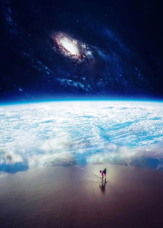 Samolepka Surfer Walk on Earth Beach Ocean with Galaxy