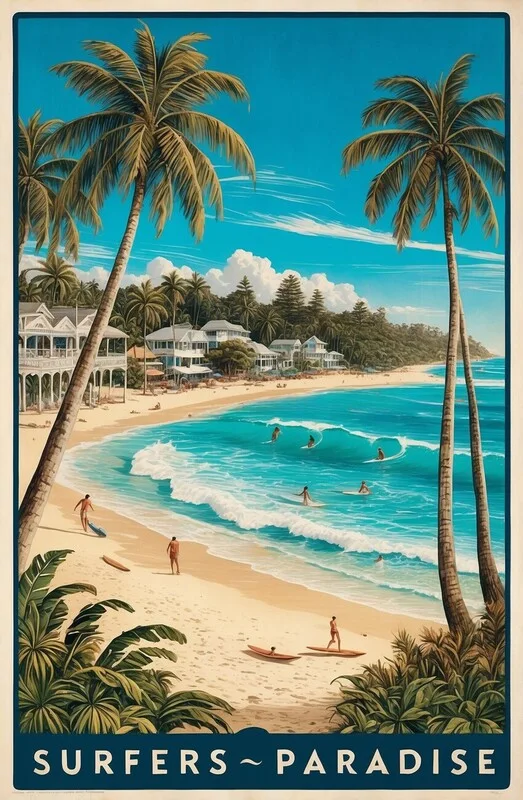 Obraz na plátně Surfers Paradise Australia Vintage Illustration