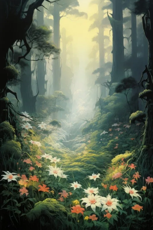 Plakát Sylvan Trail Blossoms Misty Dawn