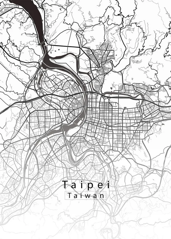 Plakát Taipei Taiwan City Map white