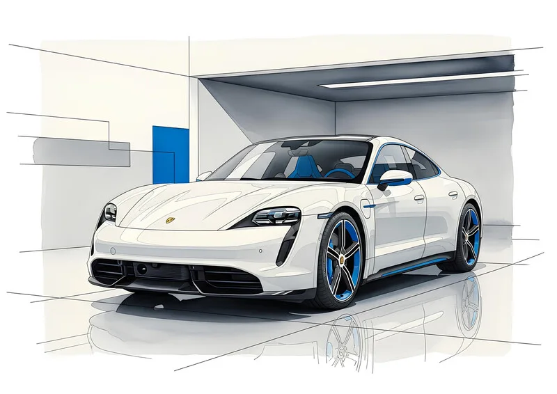 Plakát Taycan in Arctic White – Sleek Electric Performance