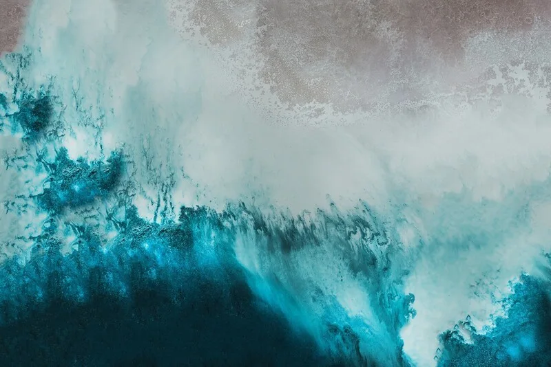Plakát Teal Beach Art, Aerial Ocean Art Print, Living Room Wall Art