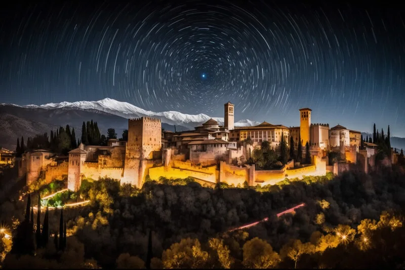 Plakát THE ALHAMBRA | Granada at night starry sky timelapse XXL