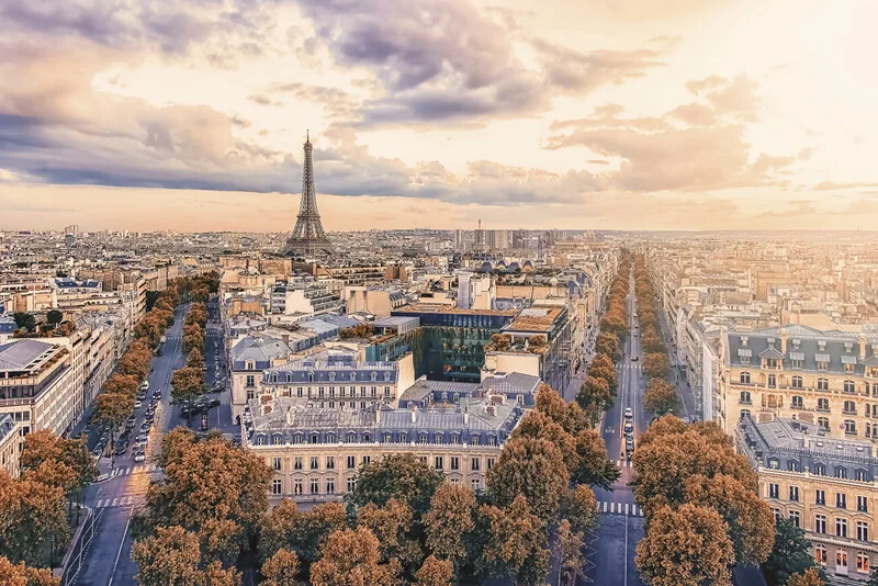 Paris city at sunset