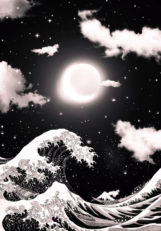 Plakát The Great Wave of Kanagawa of Hokusai black and white