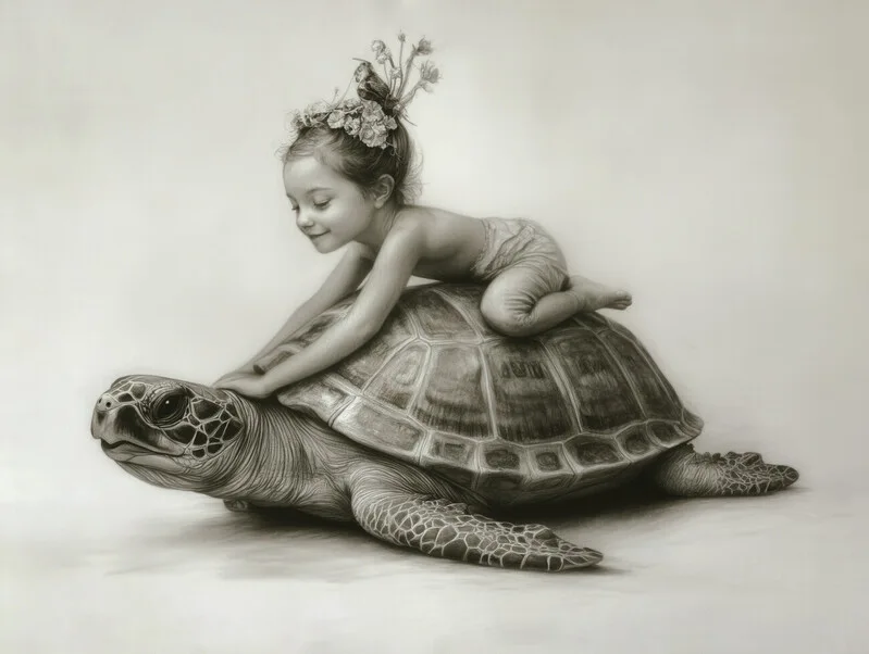 Obraz na plátně The Turtle and the Angel girl