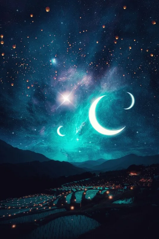 Samolepka Three Crescent Moons and Japanese rice fields