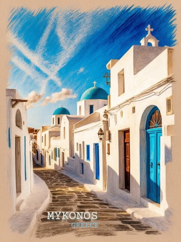 Obraz na plátně Timeless Mykonos: Vintage-Inspired Drawing of Greek Island