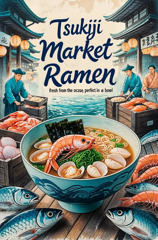 Obraz na plátně Tsukiji Market Ramen Poster – Fresh Seafood Noodle Art