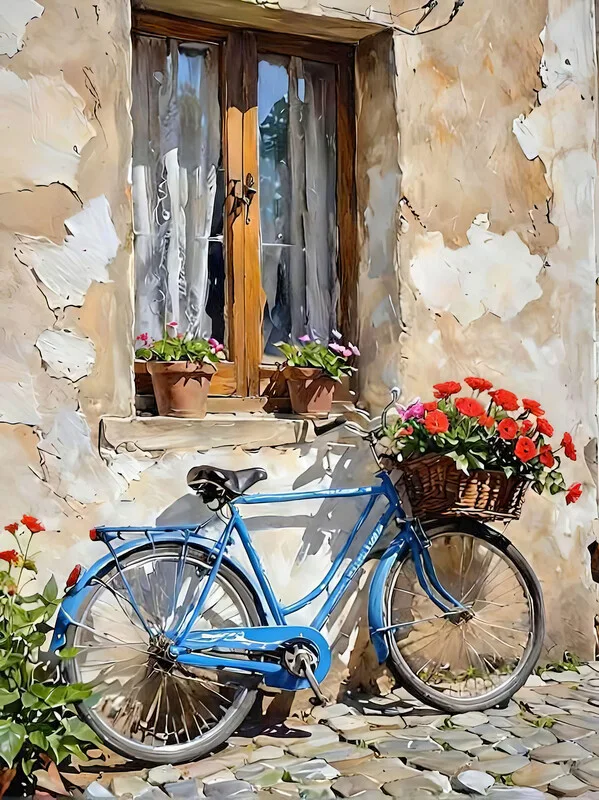 Samolepka Tuscan & Blue Bicycle with Basket of Flowers, Wall decor