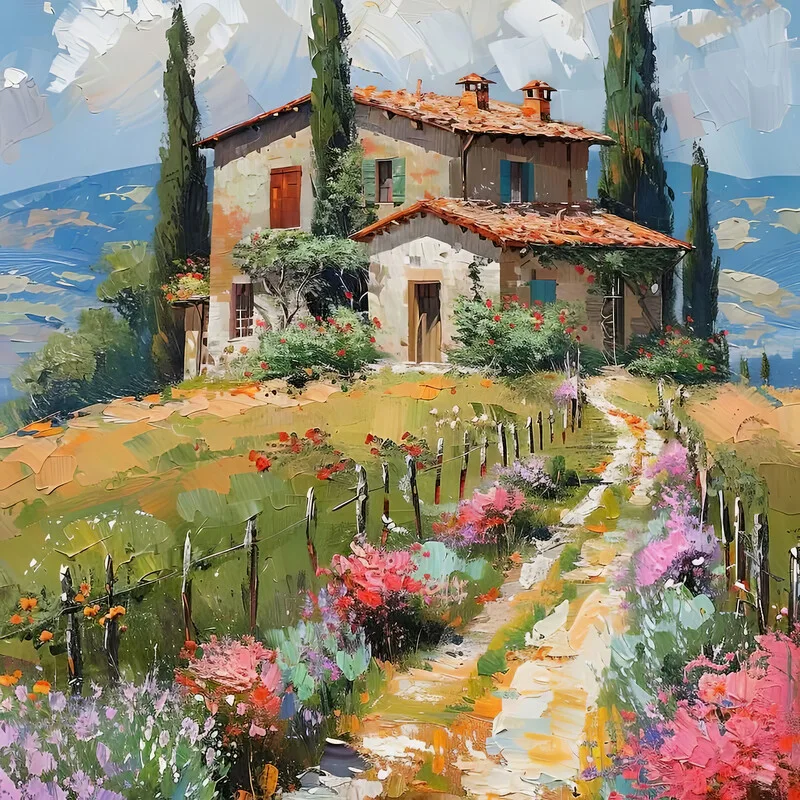 Samolepka Tuscany Cypress Trees & a Winding Flower Path wall bedroom